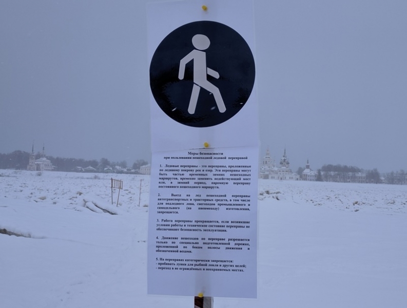 Кроме того, 6 февраля в Великом Устюге открыта пешеходная переправа через р. Сухона в створе улицы Красноармейская.