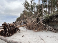 5 раз в течение января буйствовал погода на балтийском побережье. Порывы ветра достгали 26-29 м/с. В результате регион потерял порядка 15,5 га территорий.