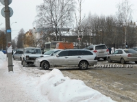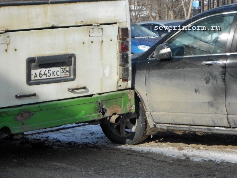 Автобус не смог объехать аварию в центре Вологды и врезался в иномарку