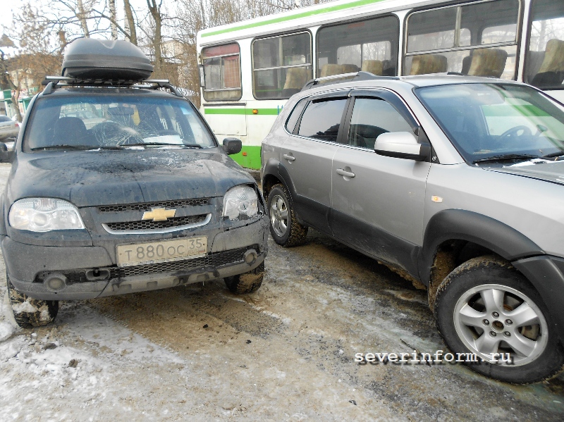Автобус не смог объехать аварию в центре города и врезался в иномарку. Как сообщает ИА «СеверИнформ — Новости Вологды», ДТП случилось около 13:30, на улице Октябрьской, 46. Там столкнулись машины «Niva Chevrolet» и «Hyundai Tucson». Первый автомобиль двигался в сторону центра. «Hyundai» подрезал иномарку, и произошло столкновение. По словам очевидцев, спустя некоторое время автобус маршрута «Вологда — Молочное» не смог объехать ДТП и врезался в машину «Honda CR-V», припаркованную у обочины.