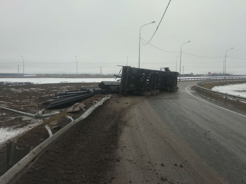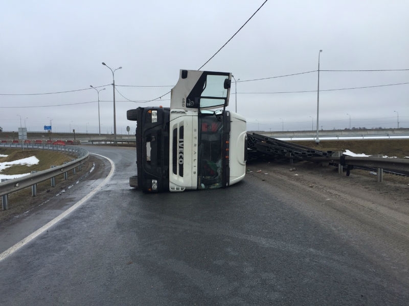 55-летний водитель грузовика Ивеко с полуприцепом при съезде на дорогу «Вологда-Норобово» не справился с управлением, и машина перевернулась. В результате ДТП никто не пострадал.