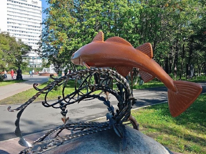 Памятник треске был открыт в 2015 году в честь 99-летия города. В 2018 году вандалы отломали рыбе один из плавников, в августе 2018-го памятник временно убрали и отреставрировали, выполнив композицию из более прочных материалов — искусственного камня и металла, сообщает ИА «СеверИнформ».