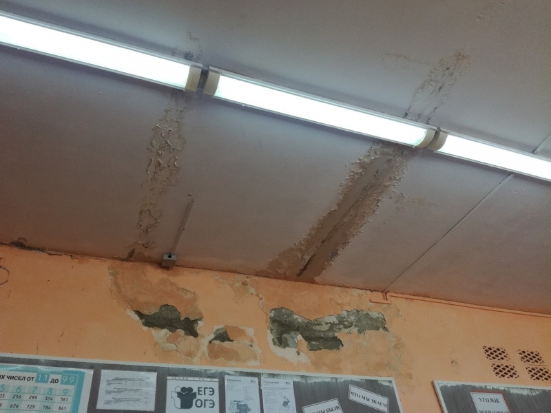 Проверка показала, что в здании учебного заведения некачественно проводится уборка, на стенах и потолках в кабинетах есть следы подтопления и протечек канализации, в фойе сломаны подоконники и оконные откосы, имеются разбитые зеркала, в туалетах нет сидений на унитазах.