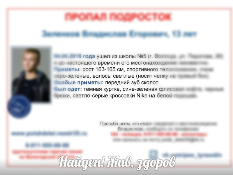 «Нашёлся. Жив. Благодаря вашим репостам. Спасибо вашим внимательным глазам и чуткости. Влада привезли домой на такси. Ждём полицию. Молитесь за его здоровье, ибо его мать неадекватна», написала мама ребенка Ольга Ремезова.