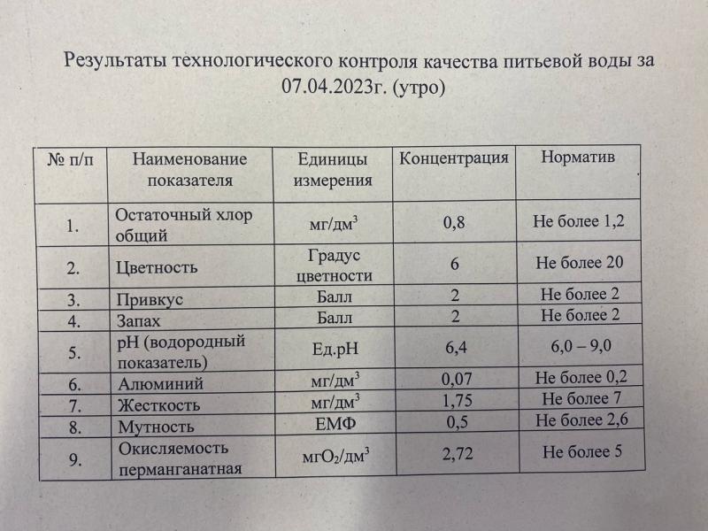 По данным аварийно-диспетчерской службы МУП «Коммунальные системы», все показатели в норме. Не превышены цифры по запаху, цветности, мутности, жесткости, привкусу, содержанию хлора, алюминия. Таковы данные на утро 7 апреля.