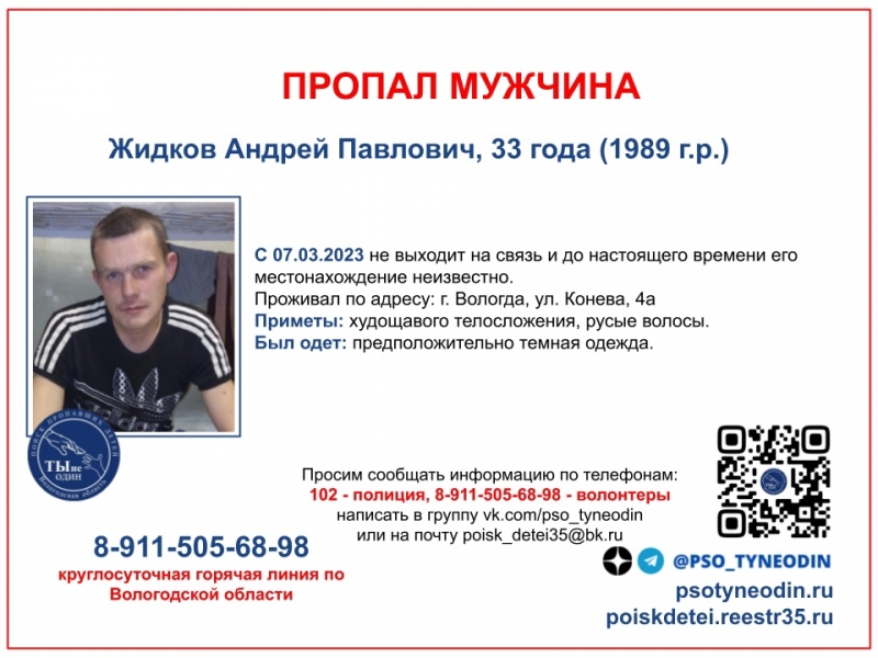 Всем, кто может что-то рассказать о судьбе вологжанина, просьба обратиться по указанным телефонам, сообщает ИА «СеверИнформ».