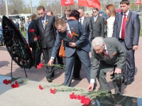 Цветы к памятнику возложили представители Администрации города и депутаты