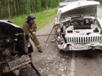 Сотрудники МЧС демонтировали помятое крыло легковушки