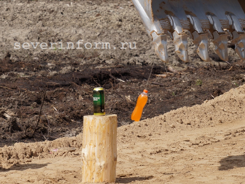 Экскаваторщики должны были сбить бутылкой жестяные банки