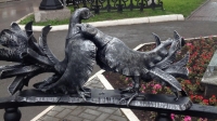 В канун дня рождения поэта Александра Сергеевича Пушкина у его памятника в центре Вологды появился новый арт-объект. Вместо обычных голубей на «Скамье влюбленных» установили декоративную породу «павлинов» со своеобразным оперением хвоста. Автор скульптуры — вологодский кузнец Олег Конин, помимо художественной составляющей, новые птицы выполняют антивандальную функцию: у них стало больше креплений, так как голубь и голубка развернуты друг к другу.