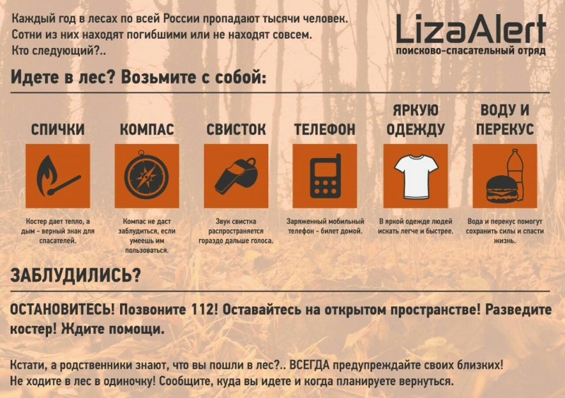 Если кто-то из ваших родных не вернулся вовремя из леса, не теряйте время - звоните по номеру 112 или на горячую линию #ЛизаАлерт: 8 800 700 54 52, сообщает ИА "СеверИнформ".