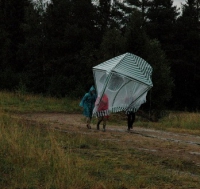 "Из установленных нами шатров уцелел лишь один - в котором будет открыта мастерская «Молодежь и творчество», - рассказывает Максим Петряев. Ветер полностью снес палатку поваров, залило пресс-центр. К счастью, техника не пострадала, все оборудование работает. Ураган начался перед ужином, который, несмотря на катаклизмы, все же состоялся. Крышу кухни-шатра унесло в лес, но повара восстановили ее, приготовили еду и всех накормили".