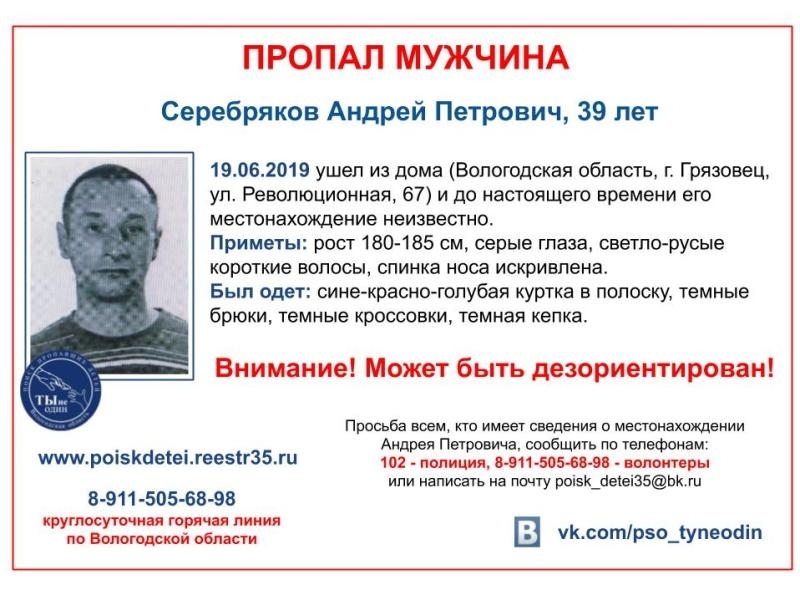 Также в июле искали трех детей. Всех их нашли живыми. Пока остается не найденным 39-летний мужчина из Грязовца. Он пропал еще в июне, сообщает ИА "СеверИнформ".