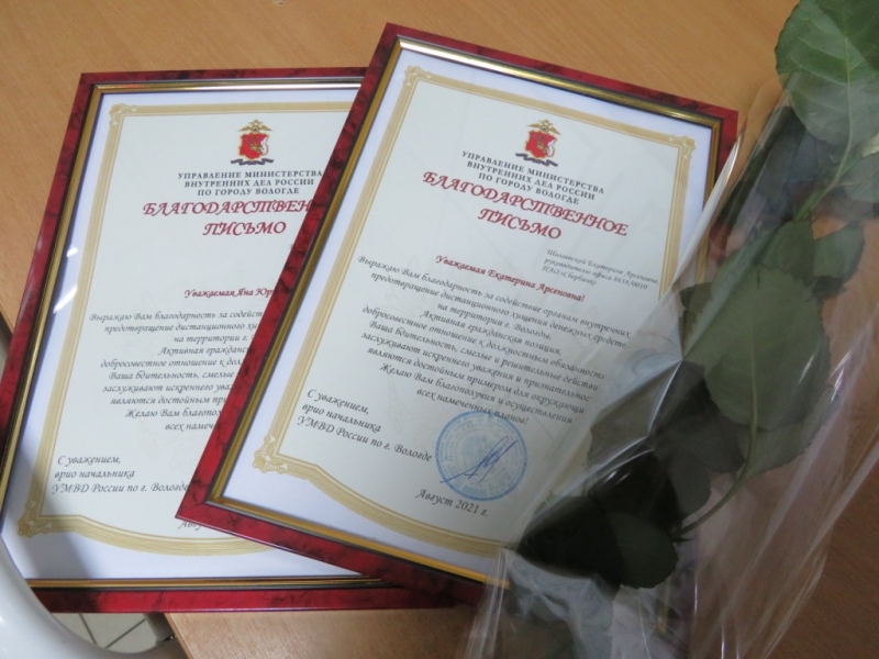 Сотрудники отделения убедили вологжанина, что это звонок от мошенников, чем сберегли 250 тысяч рублей. Женщинам вручены грамоты от руководства УМВД за активную гражданскую позицию, сообщает ИА "СеверИнформ".