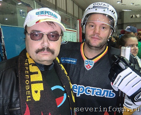 Болельщик Игорь из Вологды с нападающим "Северстали" Йозефом Стракой