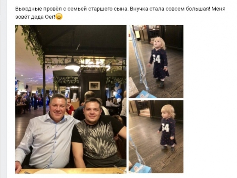 «Выходные провёл с семьей старшего сына. Внучка стала совсем большая! Меня зовёт деда Оег!», - написал он в публикации.