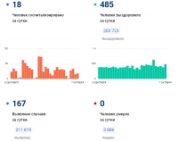 Всего с начала пандемии выявлено 211 тысяч случаев коронавируса. Выздоровели из них более 203 тысяч человек. За минувшие сутки выписали с больничного 485 пациентов. Продолжают болеть около 4200 жителей региона.
