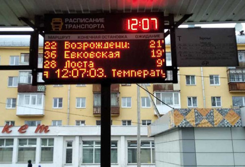 Данная система позволяет пассажирам быть в курсе, когда прибудет транспорт, какое время ожидания, и даже на них отражается температура воздуха на данный момент.