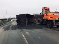 Авария произошла еще 4 ноября на Северном шоссе. За рулем «КАМАЗа» находился 25-летний мужчина. Он не справился с управлением, отчего большегруз упал на дорогу, а содержимое кузова вывалилось на дорогу.