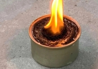 Время горения такой свечи 8 часов. Ее можно потушить и зажечь снова. Миска воды доводится до кипения за 15 минут. У свечи можно погреться, подсушить обувь, подогреть кофе и еду. Использовать ее можно в окопах и у палаток. Она немного дымит, но не так, как печь. При этом в том же окопе огонек не будет виден, если поставить свечу в небольшую ямку.