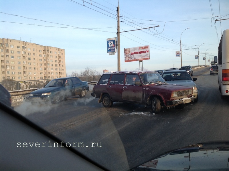 столкнулись на съезде с Ленинградского моста в Вологде. Как рассказали корреспонденту