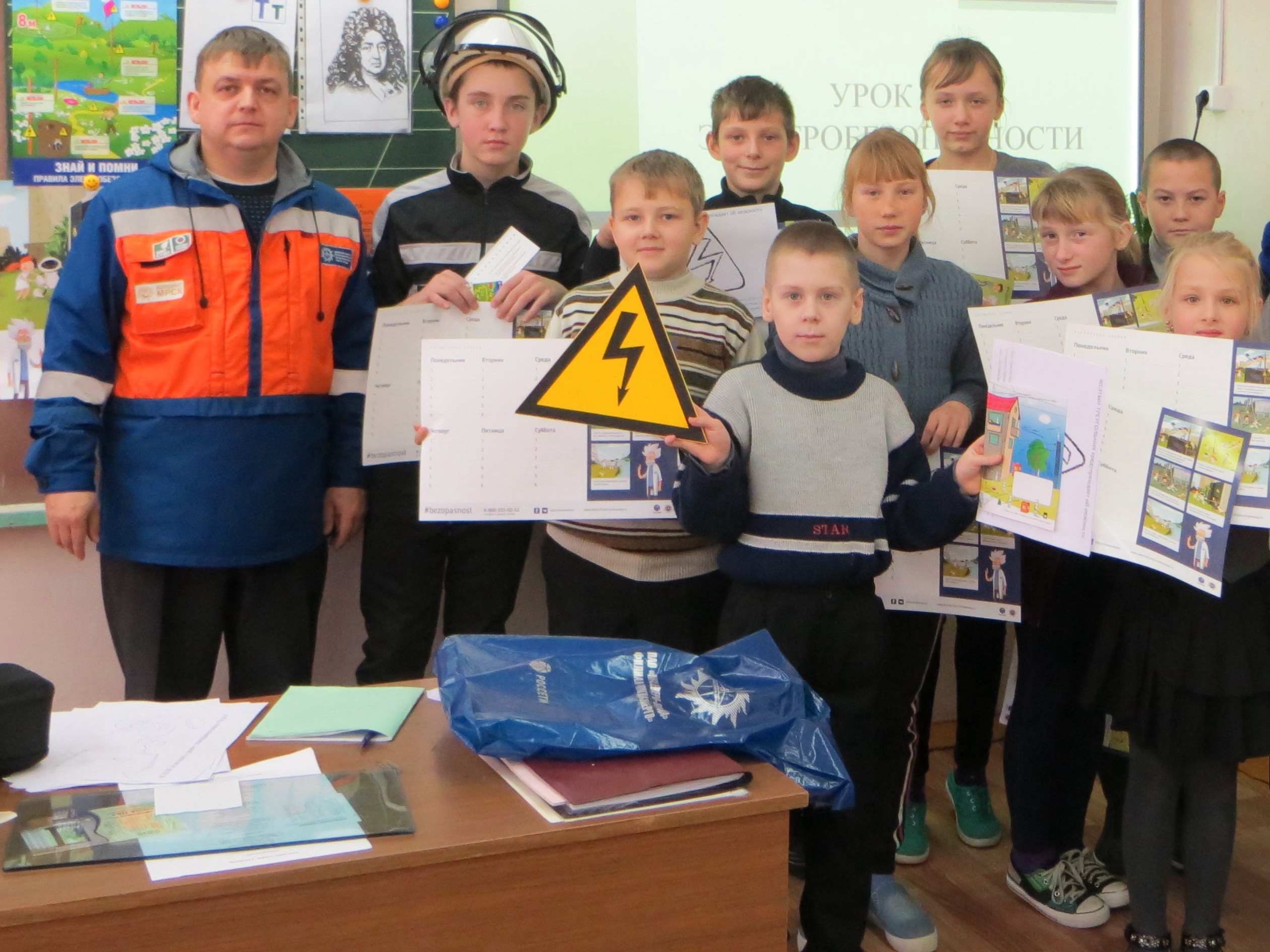 Для первоклассников образовательная программа состояла из вводной части об электричестве – откуда оно берется и как оказывается в домах. Затем специалисты филиала продемонстрировали специальную одежду для работы на энергообъектах, дали возможность примерить ее детям.