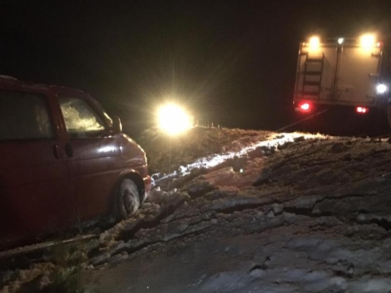 Водитель автомобиля «Фольксваген Транспортер» не справился с управлением на зимней дороге, машину занесло и вынесло за обочину. В результате ДТП транспортное средство перевернулось и оказалось на крыше. Спасатели Арктического центра "Вытегра" с помощью КАМАЗа вытащили автомобиль из кювета и поставили его на колеса. Водитель и пассажир микроавтобуса не пострадали.