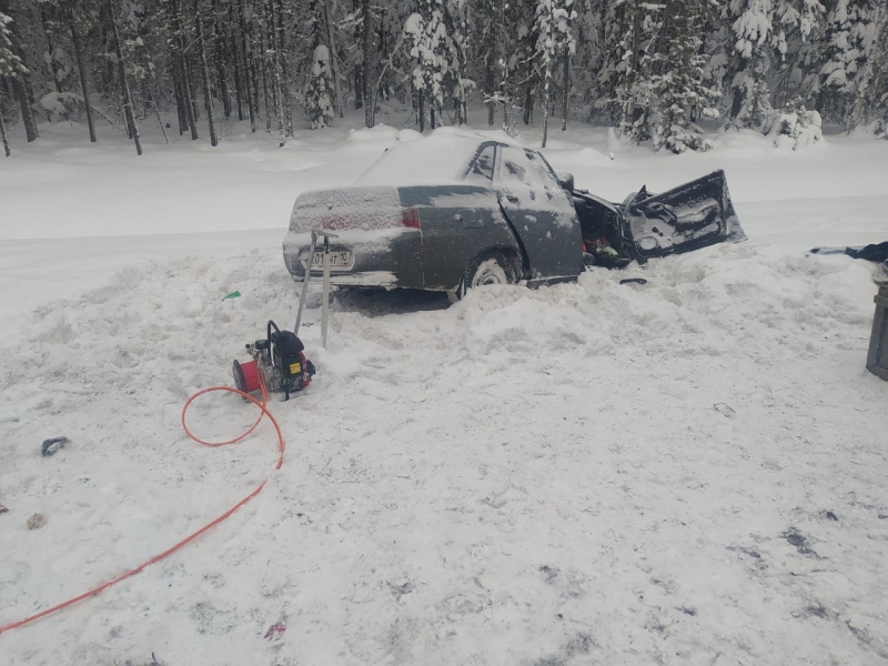 Десятка ехала по трассе со стороны Сегежи в направлении Петрозаводска. По предварительным данным, водитель ВАЗа совершил столкновение по касательной с двигающейся по встречке фурой. От удара автомобиль выкинуло за пределы дорожного полотна.