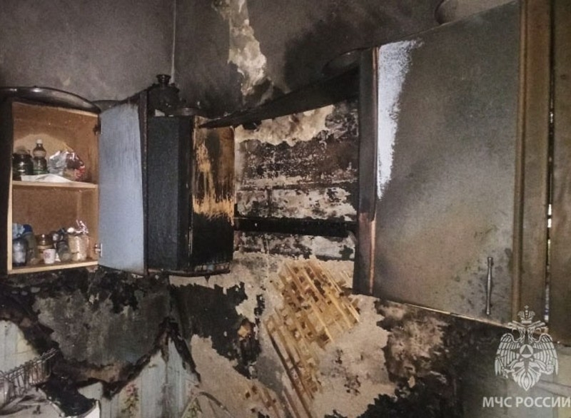 До прибытия пожарных из дома вышли 6 человек: одна хозяйка квартиры и пятеро соседей. Огнем поврежден кухонный гарнитур, внутренняя отделка
