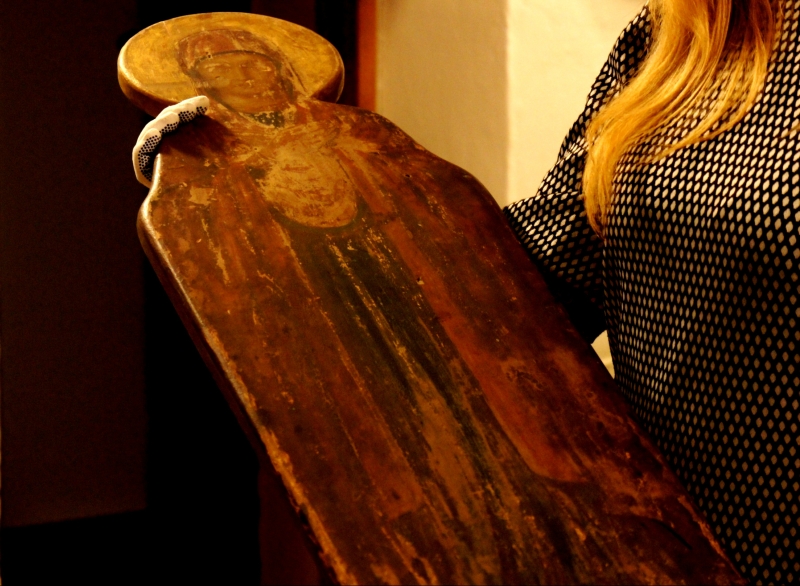 На хранение в музей в том числе поступила икона-плащаница Богоматери, датированная XIX веком. Данный предмет является достаточно редким образцом иконописания. На его оборотной стороне круглое клеймо с орудиями страстей на Голгофе, над которым процарапано: «Соловки». Можно предположить, что икона была написана для Соловецкого монастыря, Все известные изображения Богородицы на деревянных плащаницах чрезвычайно схожи и восходят к одному прототипу. Этот иконографический образец сохранился до наших дней и находится в Иерусалиме в подворье Гефсиманской обители. Гефсиманская плащаница была написана в середине XIX века. Плащаницу Богоматери выносят в канун праздника Успения Богородицы.