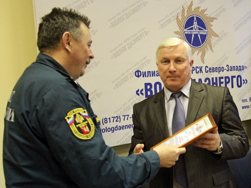 По итогам работы за 2012 год, Главное управление МЧС России по Вологодской области отметило плодотворное сотрудничество с филиалом ОАО «МРСК Северо-Запада» «Вологдаэнерго» благодарственным письмом. Награду с формулировкой: «За личный вклад в развитие и совершенствование мероприятий в области гражданской обороны, и в связи с празднованием 80-летия со дня образования гражданской обороны» заместителю Генерального директора – директору филиала «Вологдаэнерго» Александру Климанову вручил первый заместитель начальника Главного управления МЧС России по Вологодской области Владимир Калита. Об этом сообщает ИА «СеверИнформ - Новости Вологодской области».