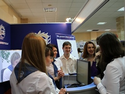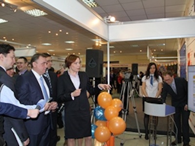 На выставочном стенде работал мобильный центр клиентского обслуживания
