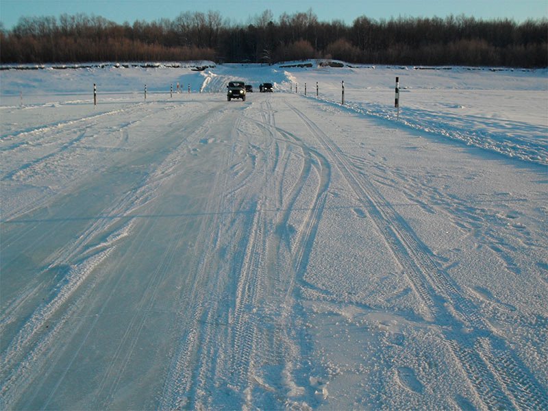 Вологодской области. Это переправы через реки Сухона и Северная Двина. Их грузоподъемность снижена до 3 тонн, а толщина льда составляет 60 сантиметров.