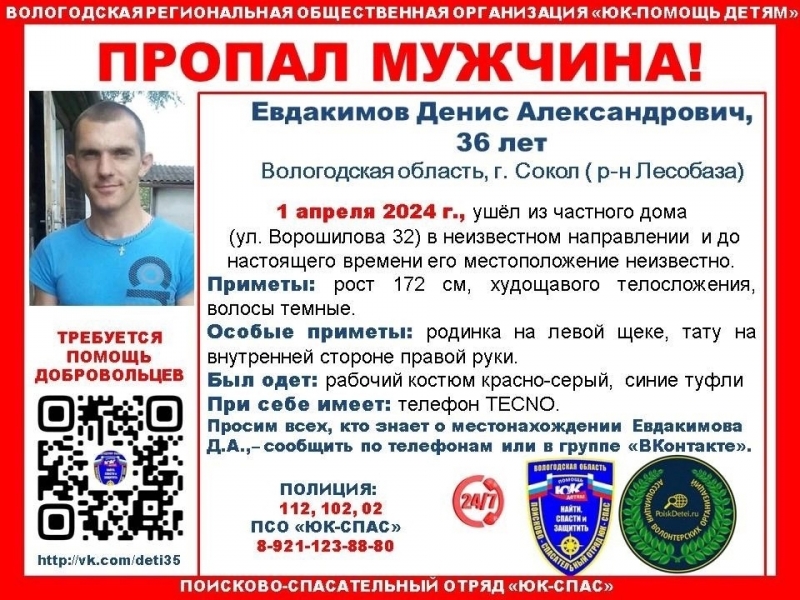 Всех, кто знает о местонахождении сокольчанина, просьба обратиться в полицию или к волонтерам, сообщает ИА «СеверИнформ».
