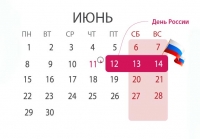 Дополнительные выходные связаны с празднованием Дня России и проведением парада Победы. Как напомнили в Роструде, сократится рабочая неделя с 8 по 11 июня. Продолжительность рабочего дня 11 июня уменьшится на час, так как это предпраздничный день.