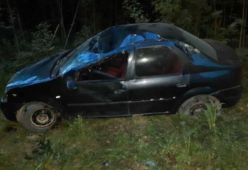 Было уже поздно, около 9 вечера. Водитель Рено не справился с управлением и улетел в кювет, где перевернулся на крышу.