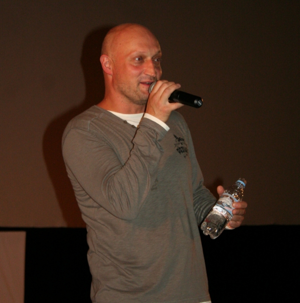 "Давайте проголосуем, - обратился актер к зрителям. - Вы согласны смотреть демо-версию? Если вам не понравится, мы в любой момент сможем прервать показ". Вологжане смотреть картину согласились единодушно, поддержав свое решение аплодисментами. "Тогда вы впервые увидите версию фильма, которую показывают профессионалам", - заявил Гоша Куценко.
