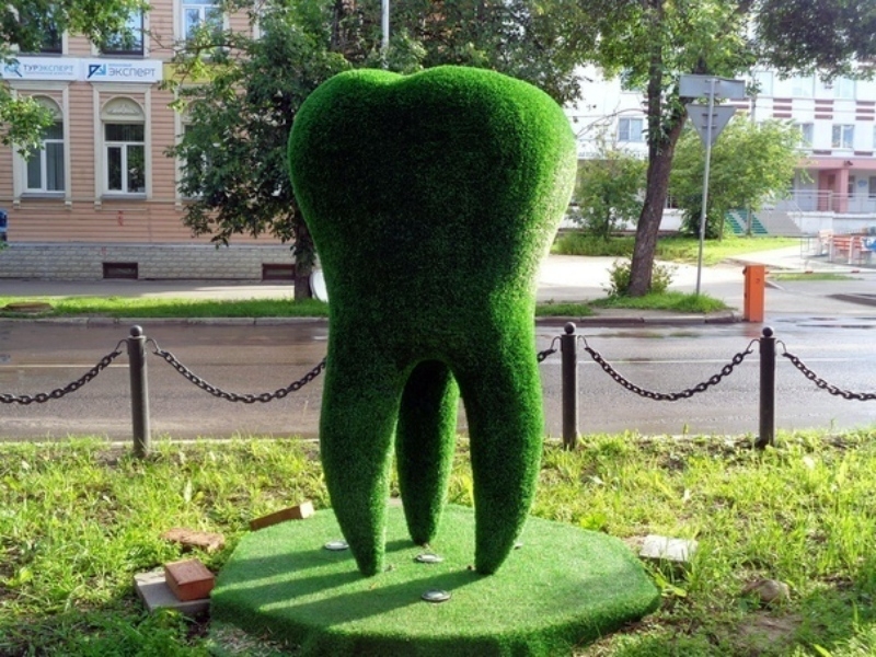 В центре областной столицы установили искусственный топиар в виде зуба. Он появился на улице Благовещенской, напротив детской поликлиники. С чем связан выбор формы и места этого представителя ландшафтного искусства, неизвестно.
