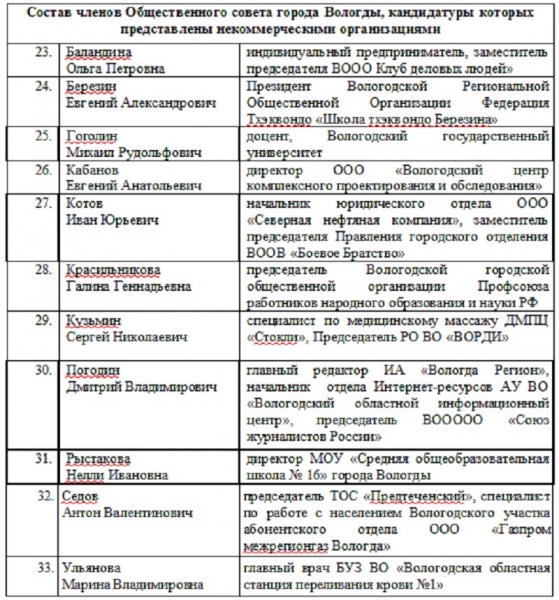 Полный актуальный список членов Общественного совета Вологды — на фото ниже, сообщает ИА «СеверИнформ».