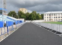 Пока подрядчик уложил первый слой резинового покрытия для беговых дорожек и легкоатлетических секторов. Со следующей недели, если позволят погодные условия, планируется начать монтаж второго слоя. Все материалы водопроницаемые и отвечают требованиям безопасности.