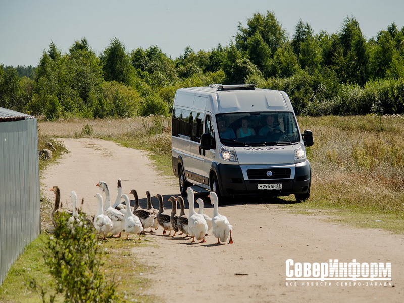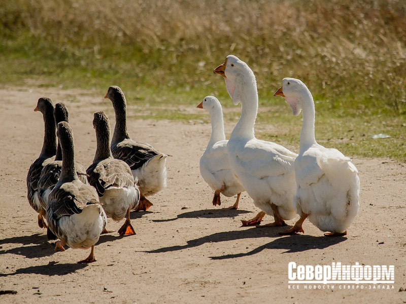 Гуси привлекают внимание приезжих, некоторые даже заходят в само подворье, чтобы посмотреть на других птиц