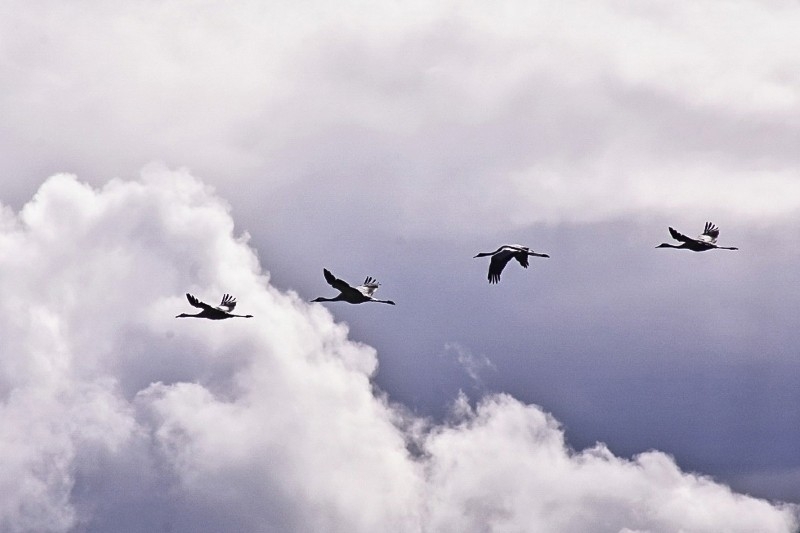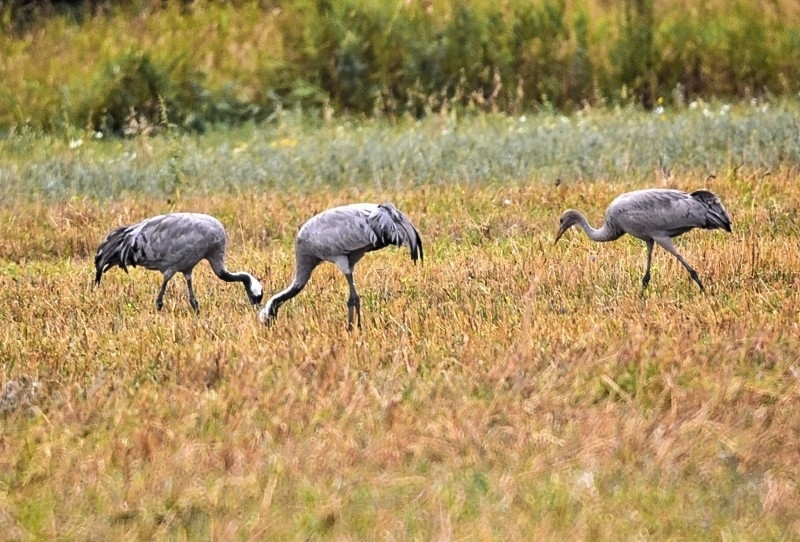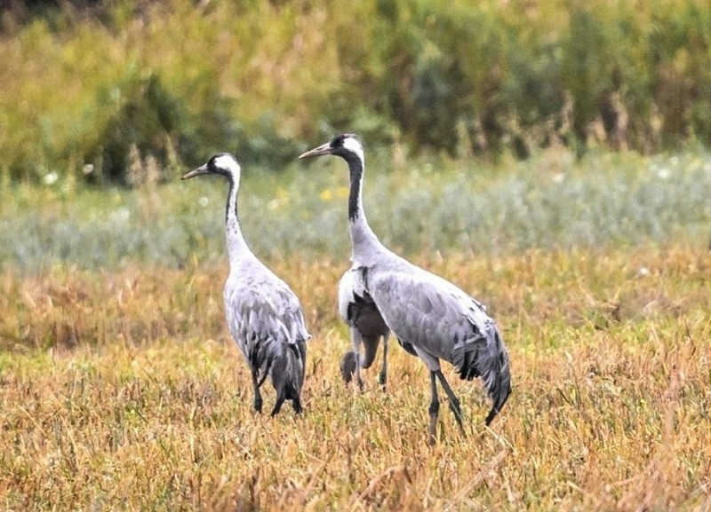 «Стая не менее 100 птиц пролетала над Бережным в сторону озера. Несколько журавлей остановились на поле. Им для полета нужен разгон. Обычно вначале осени пернатые обучают молодежь. Как-то я наблюдал, как молодой журавль сидел на мамке в полете и махал крыльями. Охотники говорят, что журавли у нас гнездятся в Томаши на болотах», рассказал Александр Красильников.
