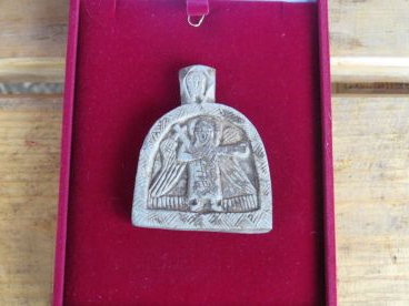 Предмет, обнаруженный на раскопках, при расчистке оказался прекрасно сохранившейся нательной иконой. Она изготовлена из глиняного сланца. Специалисты признали, что это произведение искусства вырезал мастер высочайшего уровня. На лицевой стороне изображен Архангел Михаил, на обратной — символическая Голгофа.