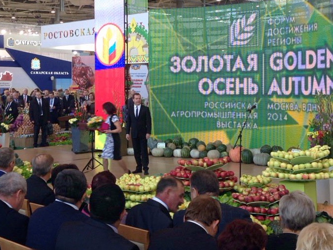 Лучших тружеников сельского хозяйства наградили в рамках 16-ой Всероссийской агропромышленной выставки «Золотая осень-2014». В ее работе принимает участие и делегация Вологодской области. Среди награжденных передовиков — Ирина Козловская, доярка СПК «Земледелец» Вашкинского района. Заслуженную награду она получила из рук Председателя Правительства России Дмитрия Медведева.