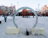 На этой территории появится арка в виде снежинки, карета с лошадьми и три больших елочных шара.