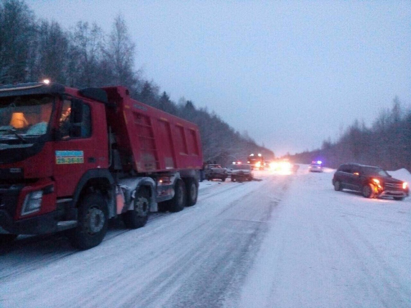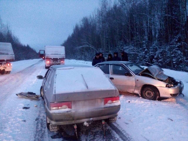 В Череповецком районе случилось ДТП с участием четырёх автомобилей. Авария произошла в 15 часов у поворота на Ильинское на трассе "Череповец—Сергиев Посад". По предварительным данным Управления ГИБДД УМВД России по Вологодской области, водитель грузовика Volvo притормозил перед поворотом налево, сзади него ехал автомобиль Daewoo Nexia, который остановился, чтобы грузовик завершил свой манёвр. В этот момент в Daewoo Nexia врезался Mercedes.