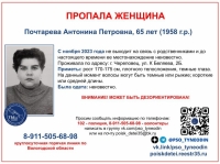 65-летняя женщина перестала выходить на связь с родственниками в ноябре прошлого года. До сих пор местонахождение неизвестно. Череповчанка может быть дезориентирована.