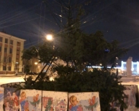 Главная елка на площади Революции в этом году стала действительно многострадальной. Еще в декабре ее снесло ветром. Такого вологжане на своей памяти не помнят. То ли плохо укрепили, то ли не рассчитывали на ураган. В итоге подрядчику пришлось ставить елку второй раз. На этот значительно укрепив основание дерева. К слову, впервые в Вологде главная ель была искусственной.