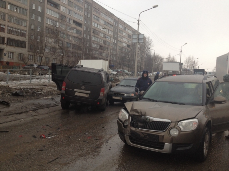 Несколько человек пострадали в массовой аварии в Череповце. ДТП случилось около 16:20 на Северном шоссе возле дома № 3. Столкнулись автомобили Audi A6, Daewoo Nexia, Nissan Pathfinder и Chevrolet, сообщили корреспонденту ИА «СеверИнформ» в областном УМВД.