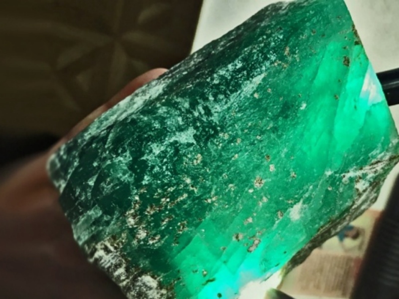 Названный так изумруд - самый крупный из найденных за последние 10 лет: его длина составляет 14 см, ширина – 7 см и вес 1,6 кг. Он был найден в конце января на Мариинском прииске, - сообщает ИА "СеверИнформ".